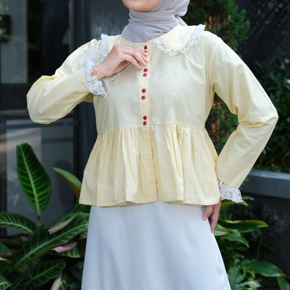 Mybamus x Nabilabyaaa Biyaa Poplin Blouse Atasan Wanita Lengan Panjang Renda Collar
