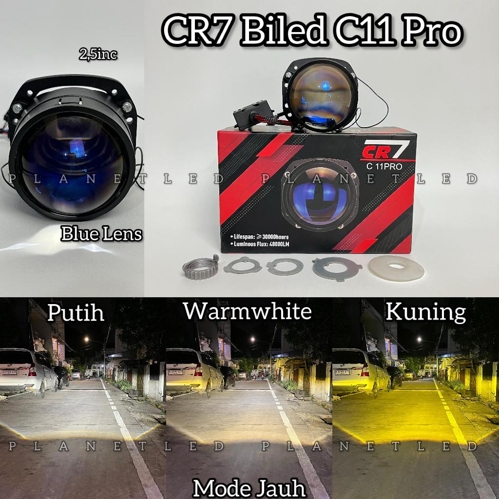 Lampu Biled 2,5inc CR7 C11 Pro Blue Lens 3 Warna Tembak Sudah Di Lengkapi Dengan Kipas Pendingin
