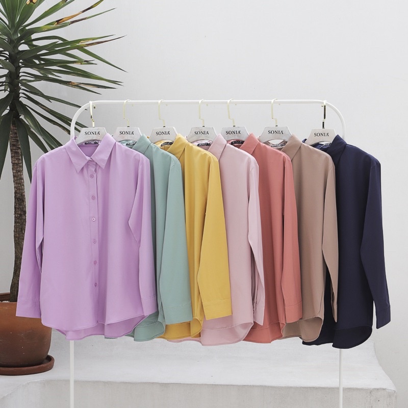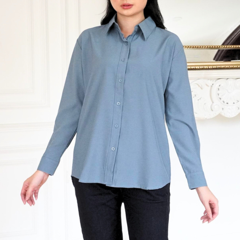 Yuri Top B2304 SONIA / Kemeja Katun Polos Premium Lengan Panjang Wanita / Kemeja Kantor Formal Basic