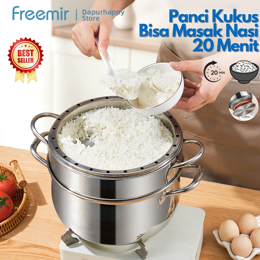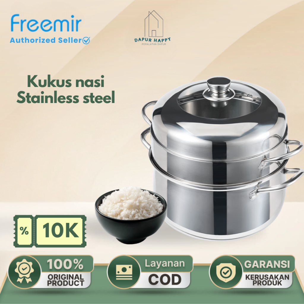 freemir Panci Kukus Stainless Steel 26cm dengan Tutup Kaca - Anti Karat | Nasi Matang Cepat 20 Menit