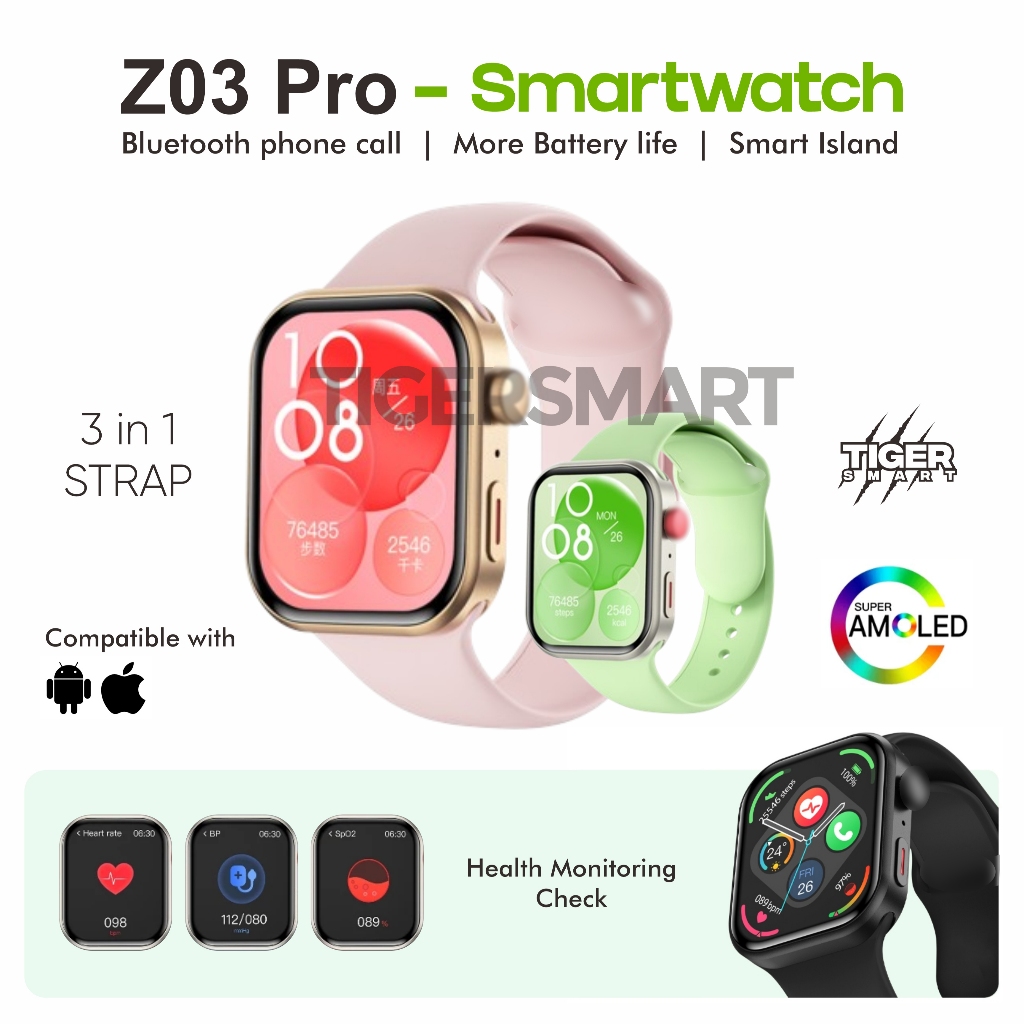 Original SmartWatch Z03 Pro dapat 3 strap Layar lebar 2.01 inch NFC smartwatch bluetooth call layar amoled Watch FIT3 Pro JAM DIGITAL health check sport mode jam tangan pria wanita