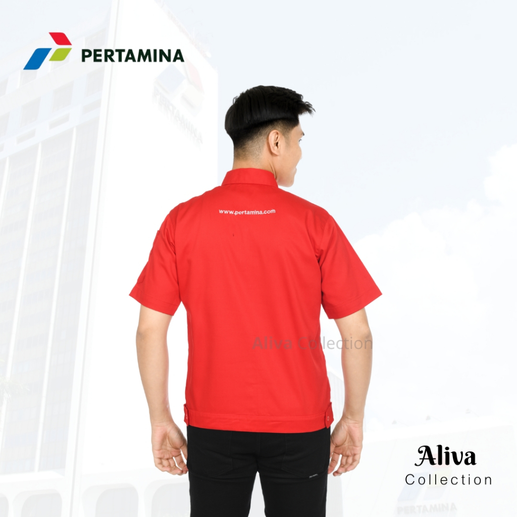 Seragam Kerja Kemeja Operator SPBU Pertamina Baju Atasan Pria Lengan Pendek