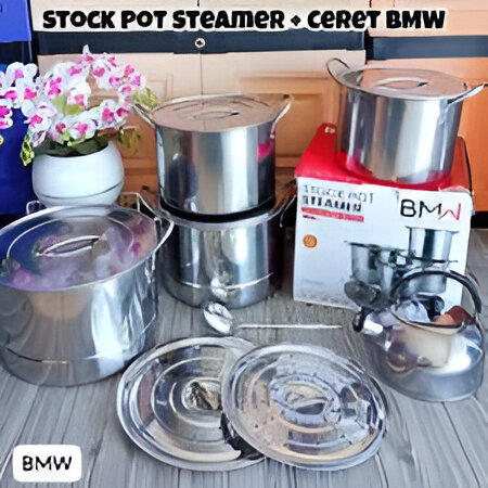 Panci Kukus Set 4pcs+1 Teko BMW / Set Pot Steamer Stainless Steel / Panci Premium