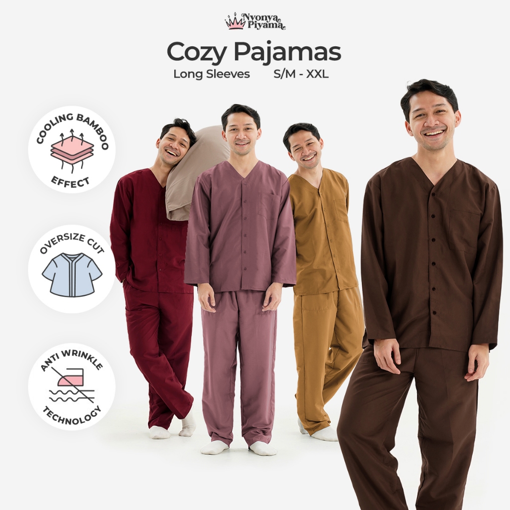 [BEST SELLER] Nyonya Piyama Poly Bamboo Oversized Cozy Set Lengan Panjang Polos Pria 02