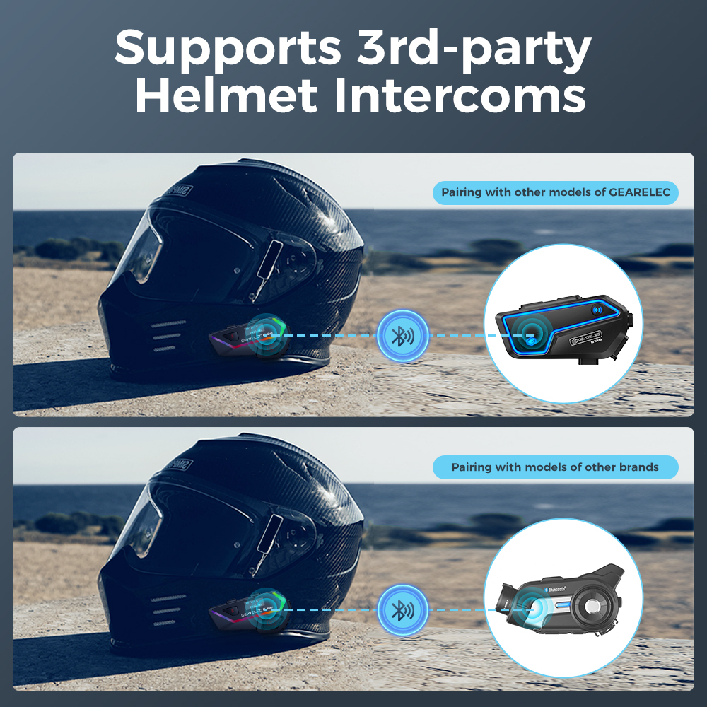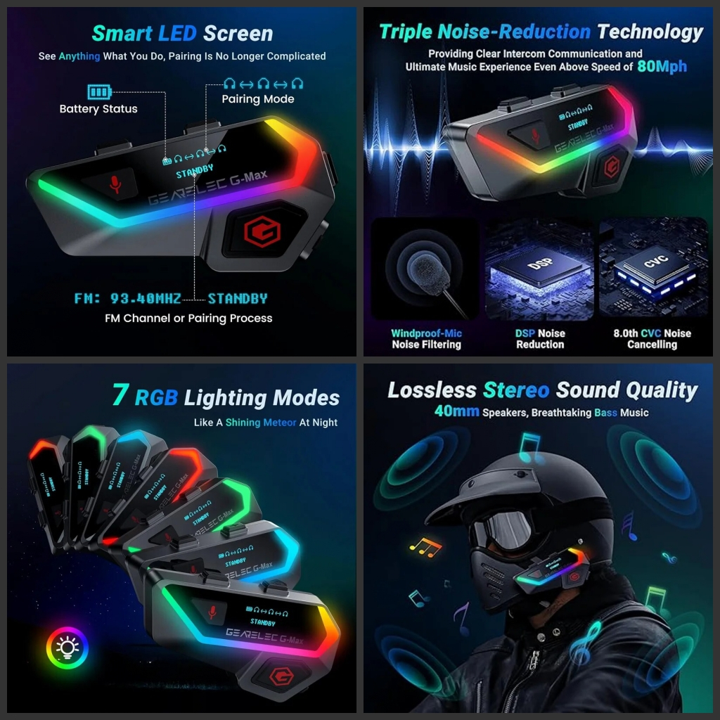 GEARELEC G-Max Helm Intercom Sepeda Motor Bluetooth Helm Headset 2000m 6 riders connected BT 5.2 FM Radio