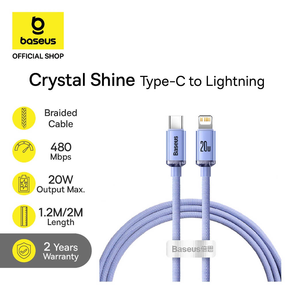Baseus Kable Data Crystal Shine Series Type-C to iP 20W Cable Fast Charging 1.2m & 2m