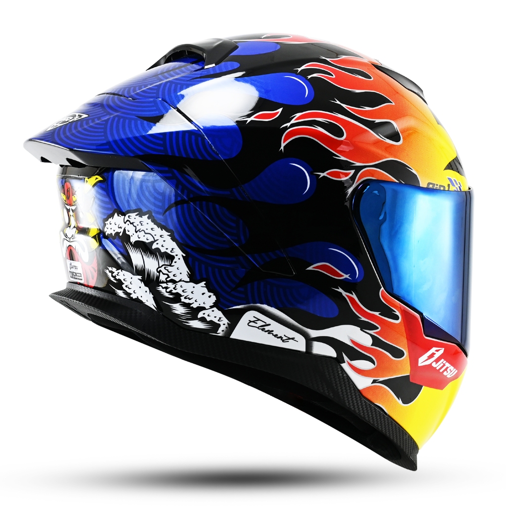 Full Face Helm Jitsu Air 1 Motif Scorpius Flat Visor Silver Blue SNI New Terbaru
