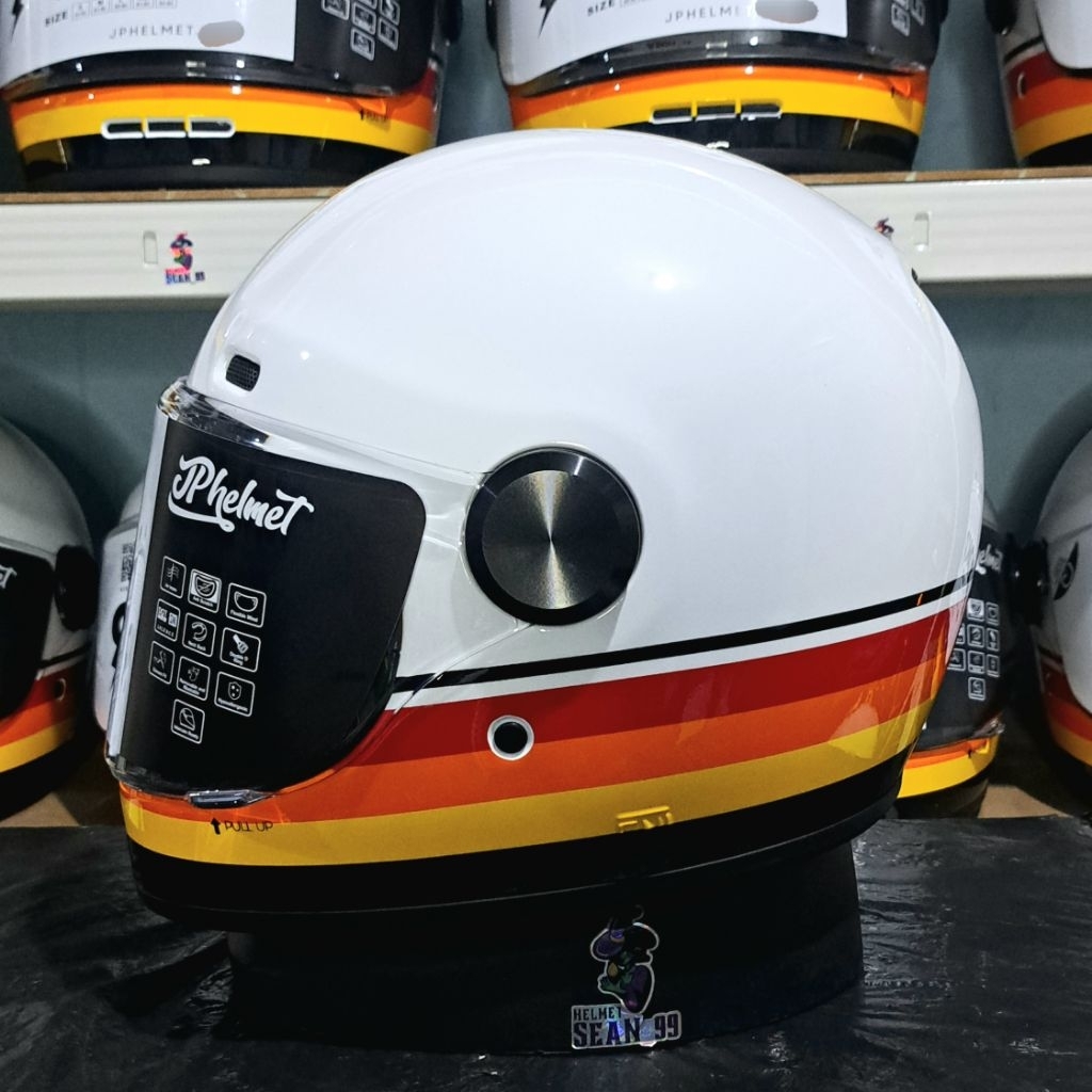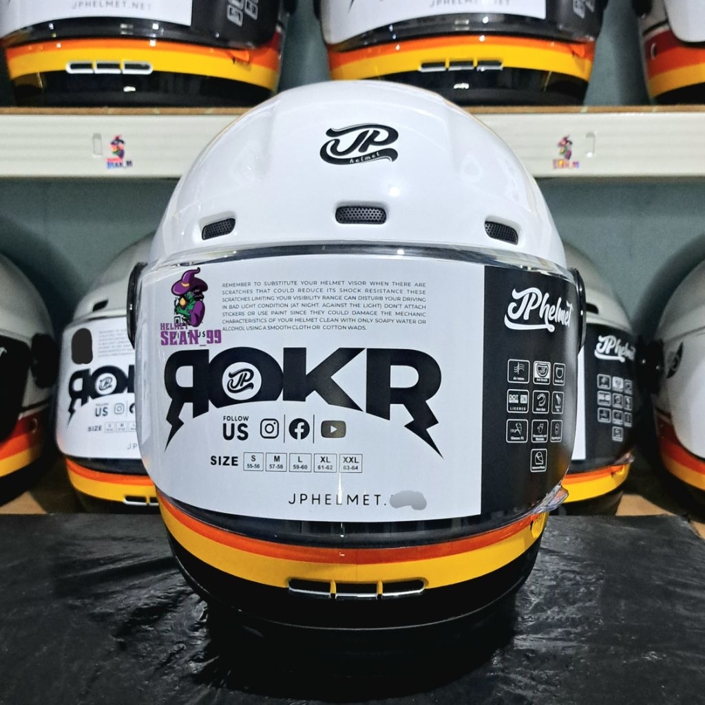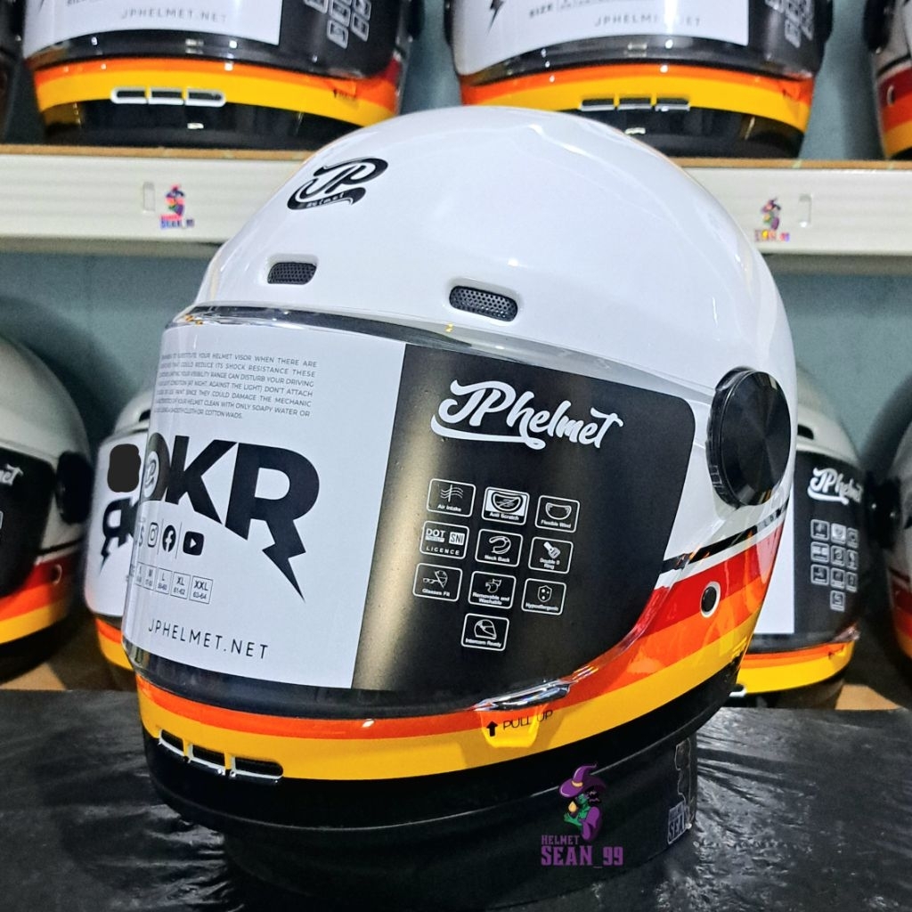 HELM JPX JP ROKR MOTIF RK 01 BROKEN WHITE FULL FACE ORIGINAL SNI DOT
