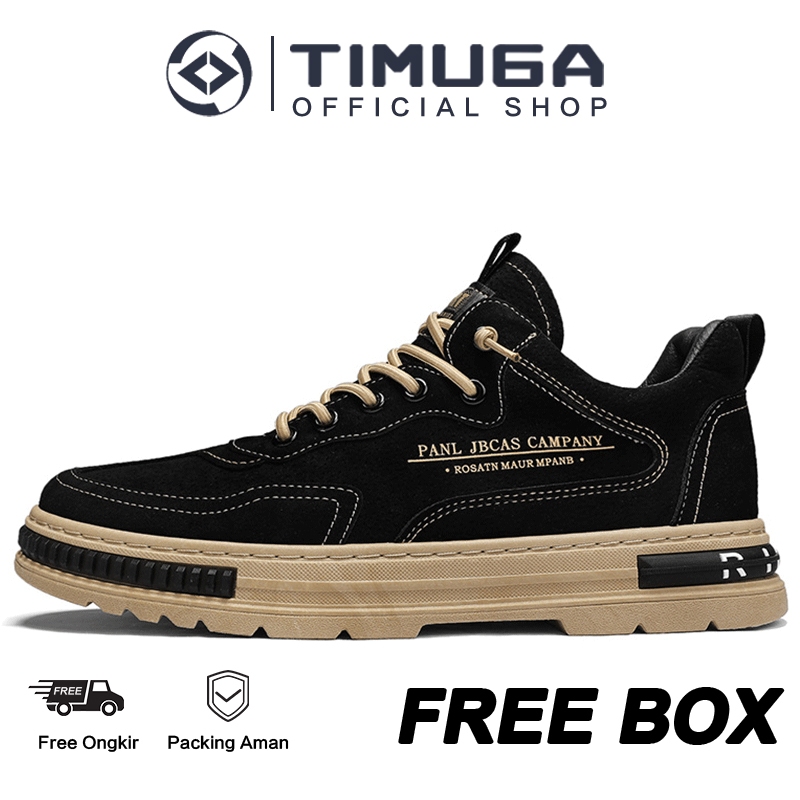 TIMUGA Sepatu Pria Sneakers Casual Kerja Sepatu Olahraga Kasual Sepatu Cowok Hitam Kekinian MC448