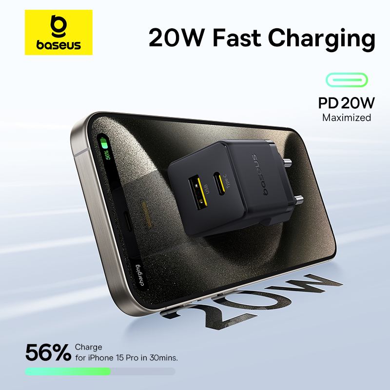 Baseus Palm Series 20W U+C Fast Charger Type-C PD3.0 QC3.0 Fast Charging for iPad for ip 16 15 14 Pro Max Assured Charging Protection