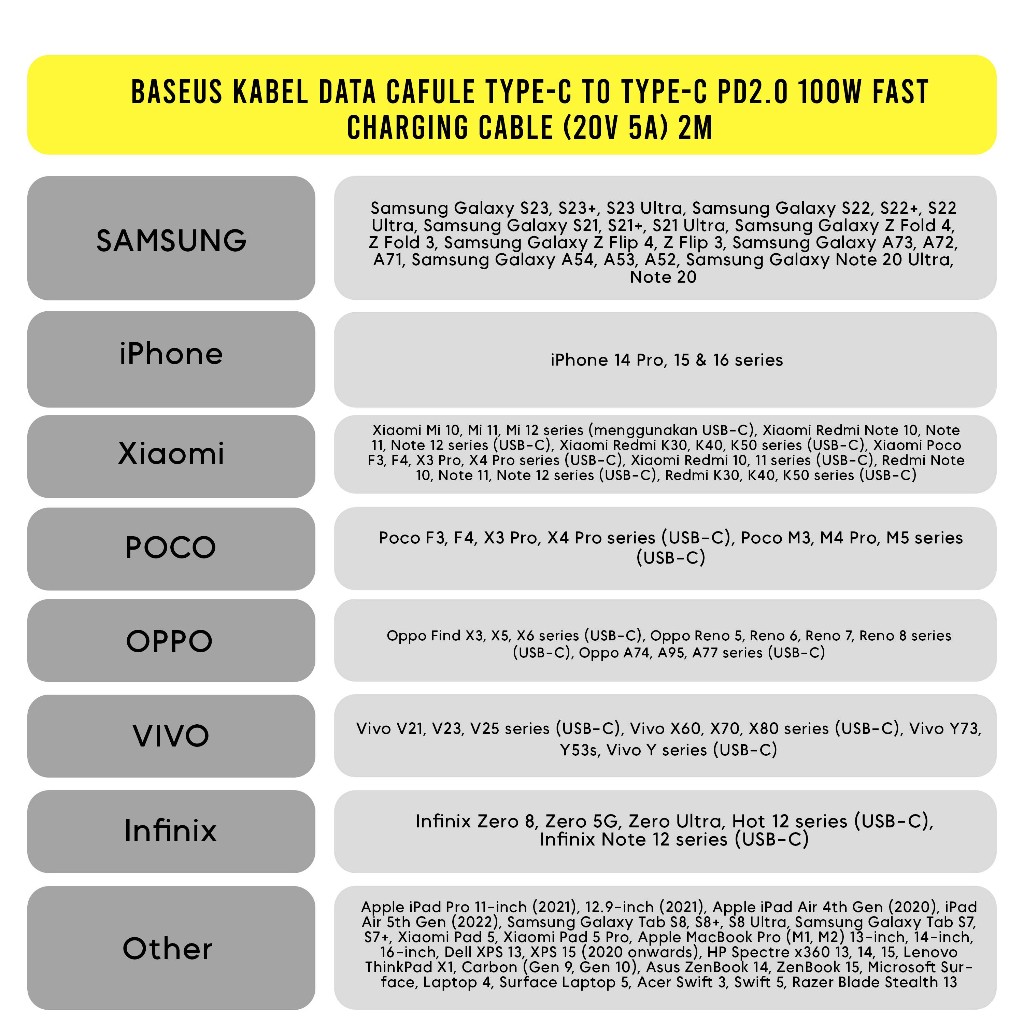 Baseus Kabel Data Cafule Type-C to Type-C PD2.0 100W Fast Charging Cable (20V 5A) 2m