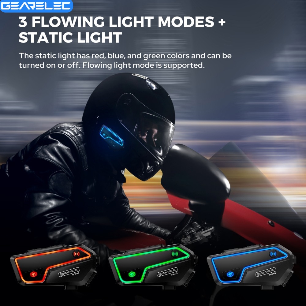 GEARELEC GX10 BT5.2 Helm Intercom Sepeda Motor Headset Support 10Riders IP67 TahanAir Music Sharing