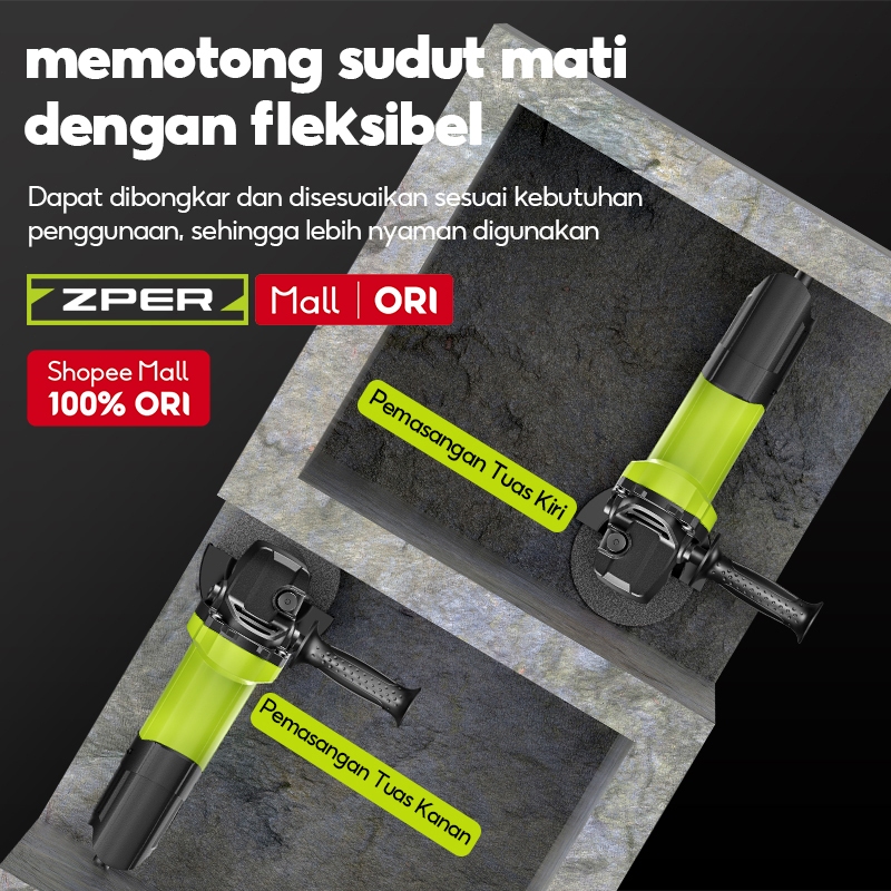 ZPER Mesin Gerinda Angle Grinder Tangan Listrik Penggiling Sudut Portable Multifungsi Untuk Potong