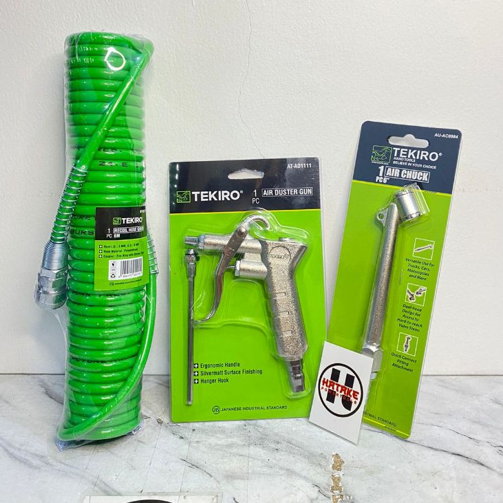 Paket Tekiro 3In1 6Meter Selang Recoil+Tire Air Chuck 6"+Air Duster Gun Tekiro