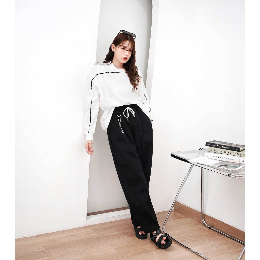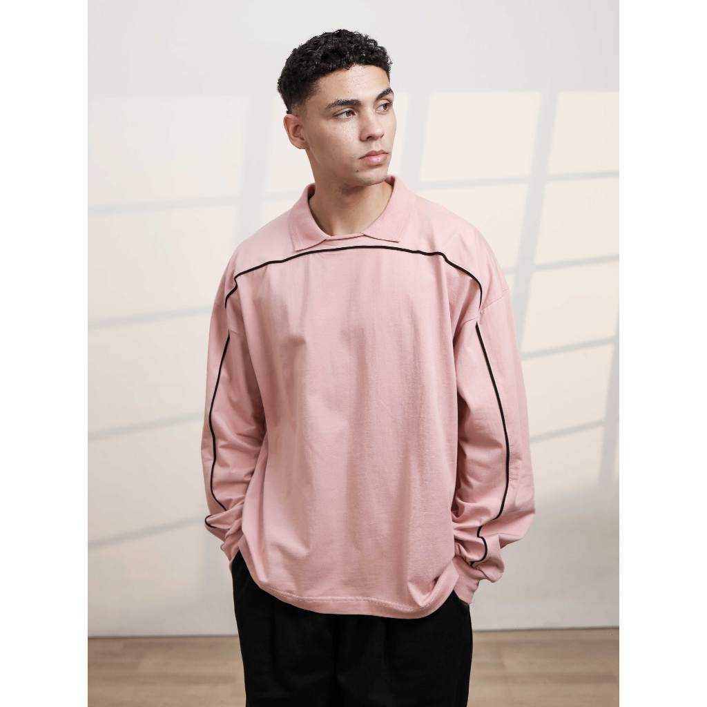 Boxy Piped Polo Long Sleeve - Polo Lengan Panjang Boxy Berlis Abyad Apparel Pro Project
