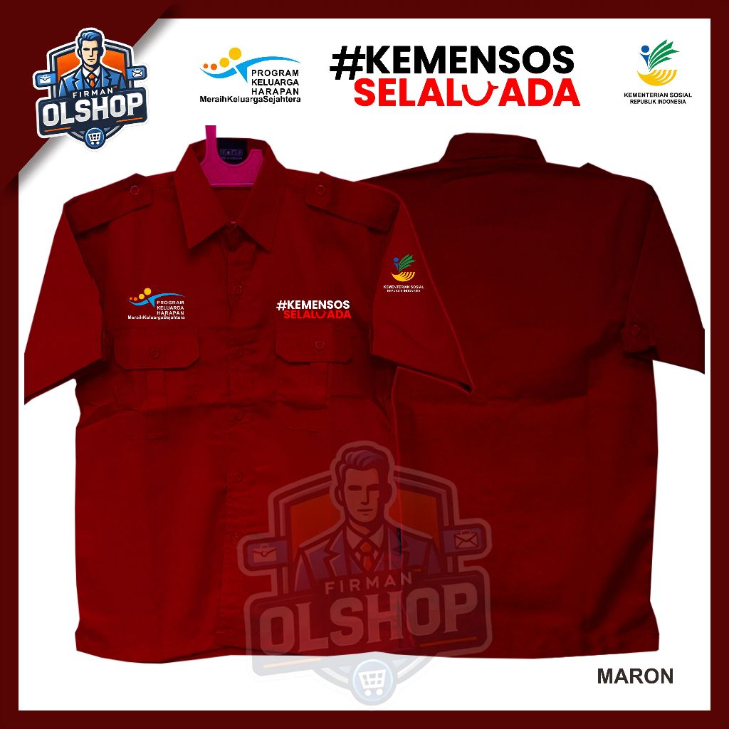 BIGSIZE Kemeja Baju Seragam Kemensos Selalu Ada PKH Lengan Pendek Full Bordir Komputer