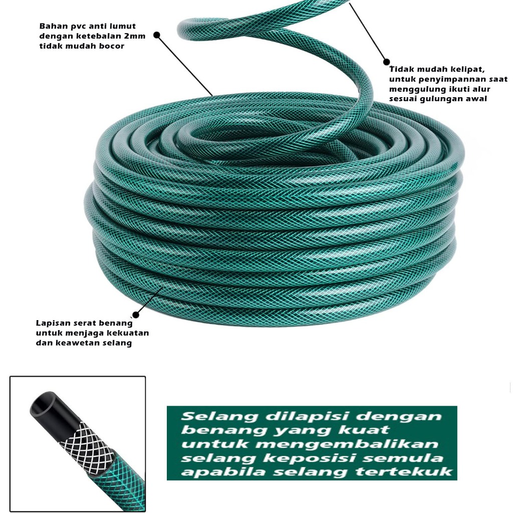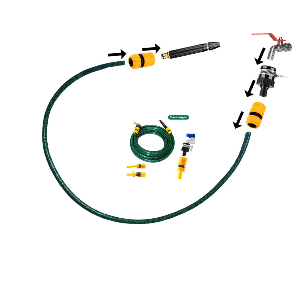 Gbs - Paket 20 Meter Selang Semprotan Air Semprot Cuci Motor Mobil Siram Taman Benang Hijau Komplit Tinggal Colok Pasang