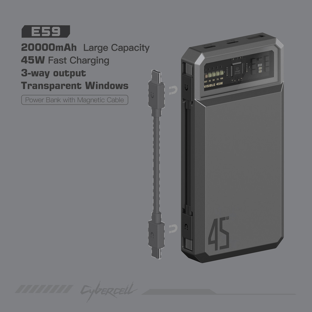 KiiP E59 Power Bank Magnetic Cable 45W Fast Charging TC PD Lightning 20000MAH