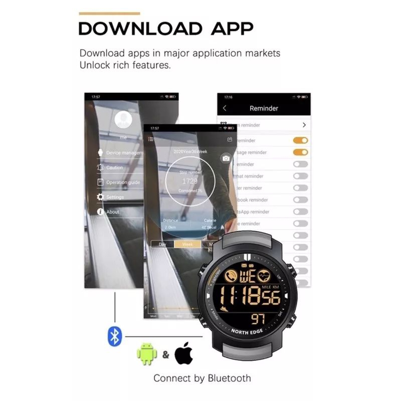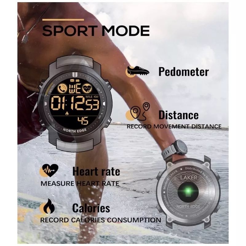 NORTH EDGE LAKER Smart Watch Men Waterproof Fitness watch Swimming Running Sports Pedometer smart watch