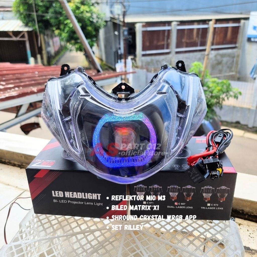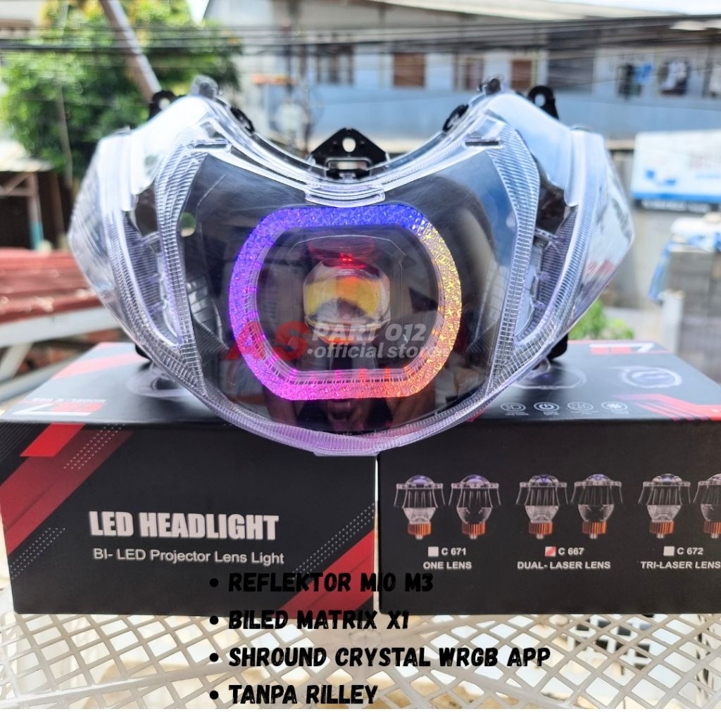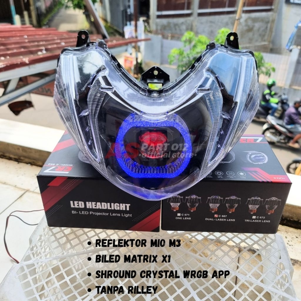 REFLEKTOR LAMPU DEPAN MIO M3 BILED MATRIX X1 SHROUND CRYSTAL WRGB 210 MODE SET RILLEY