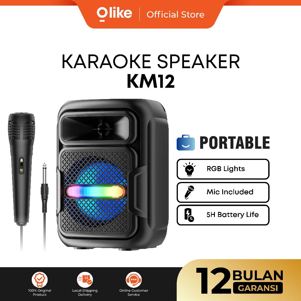 Olike Speaker Bluetooth KM12 10W Bass Stereo 5 Jam Playing Time + TWS RGB Karaoke Mic AUX TF USB