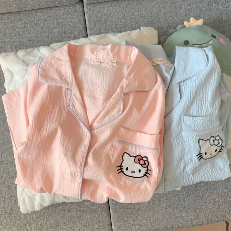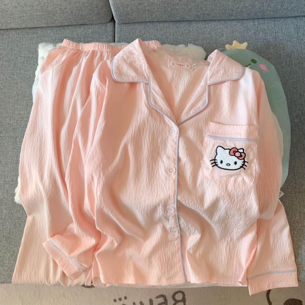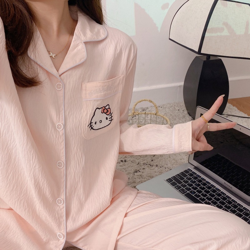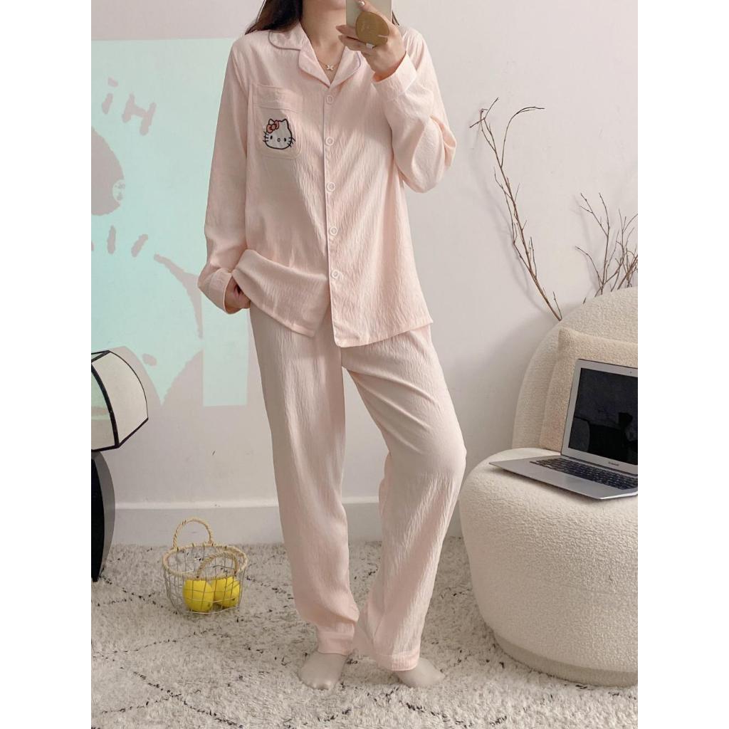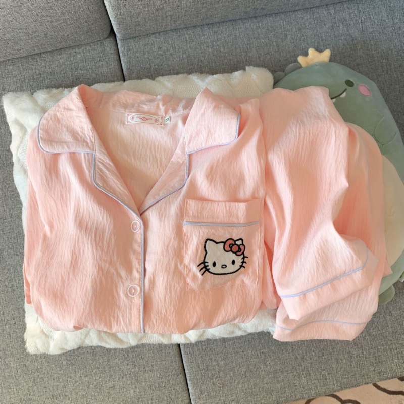 Baju Tidur Wanita Piyama Set BS-9312 Lengan Panjang Celana Panjang Kancing Depan Hello Kitty Halus Sleepwear Mimon Home
