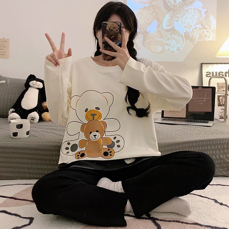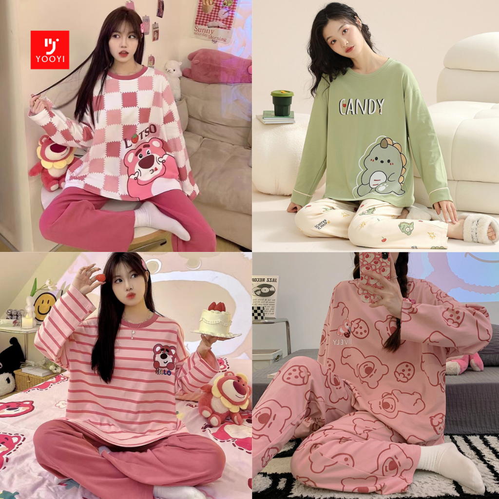 Yooyi Baju Tidur Jumbo 5XL Wanita Set Dewasa Bahan Katun Adem Lengan Panjang Celana Panjang Piyama Setelan Perempuan Ove