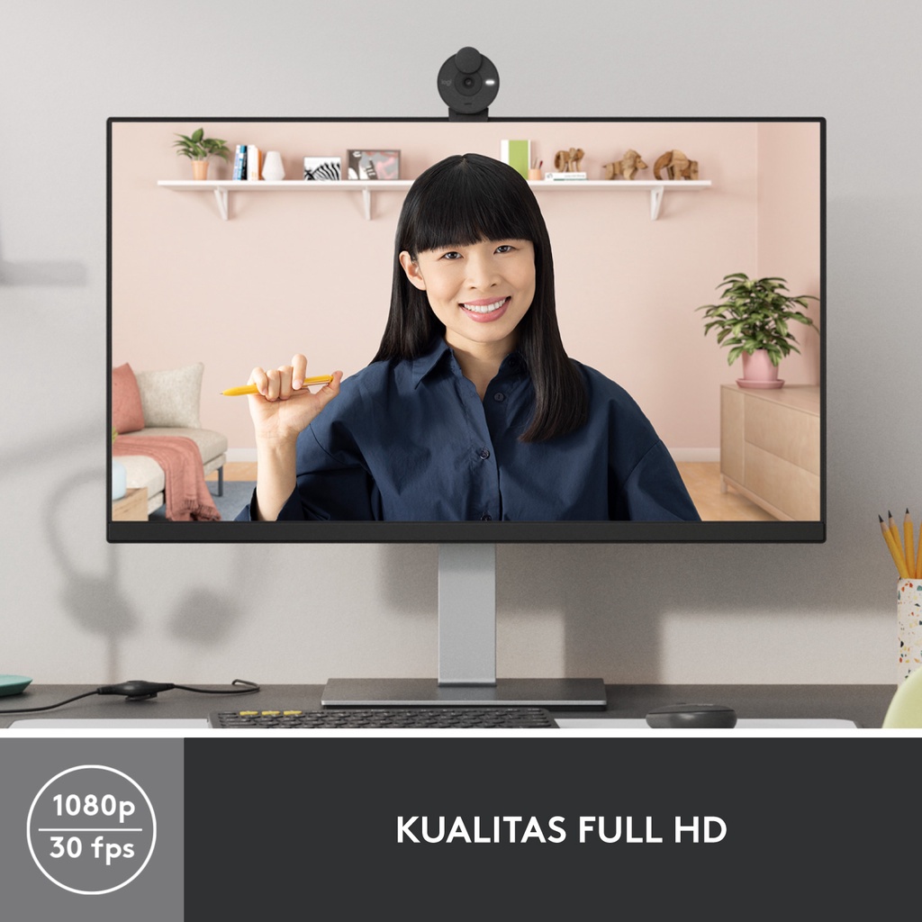 Logitech Brio 300 Webcam Full HD dengan Shutter Privasi, Mikrofon Noise Reduction, USB-C, serta bersertifikasi untuk Zoom, Microsoft Teams, Google Meet, Auto Light Correction