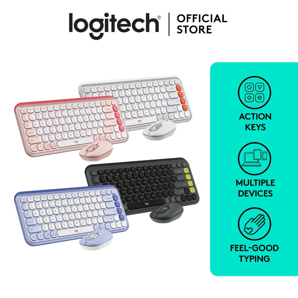 Logitech POP ICON COMBO, Kombo Keyboard dan Mouse Bluetooth, Mengetik dengan Nyaman, Tombol Key dan Tombol yang Dapat Diprogram, Klik Hening, Easy-Switch hingga 3 Perangkat