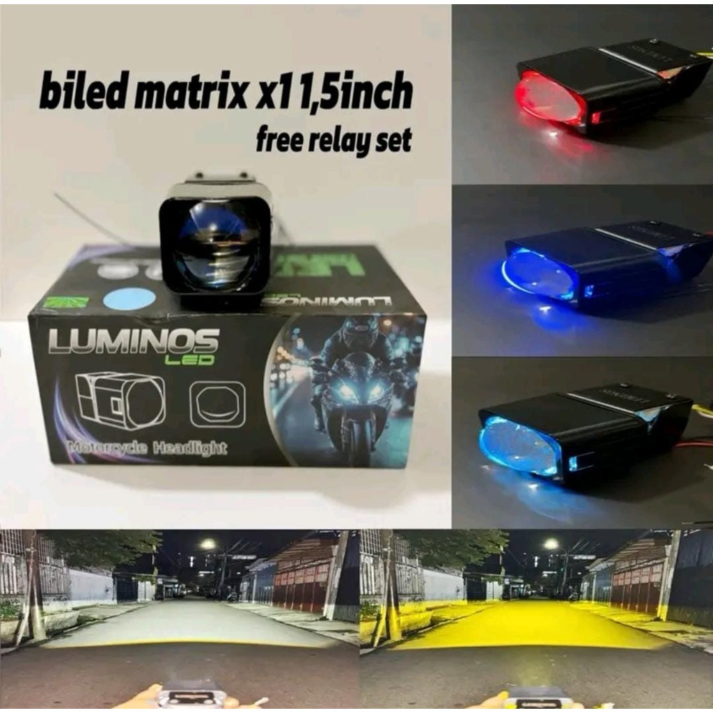 LAMPU LED PROJIE PROJECTOR BILED MATRIX 1.5 INCH LUMINOS 2 WARNA PUTIH KUNING TERMASUK DEVIL EYE BISA UNTUK MOTOR DAN MOBIL FREE RELAY SET