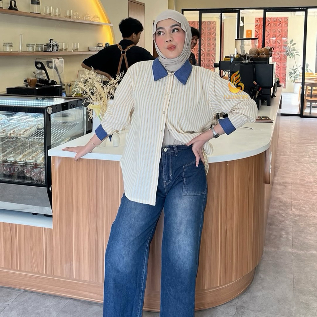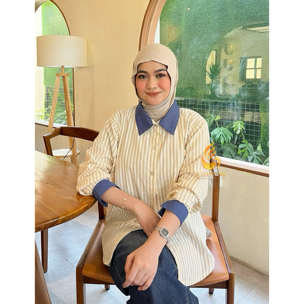 Zani - Eira Shirt - Kemeja Salur Wanita Lengan Panjang - Atasan Wanita Katun Basic