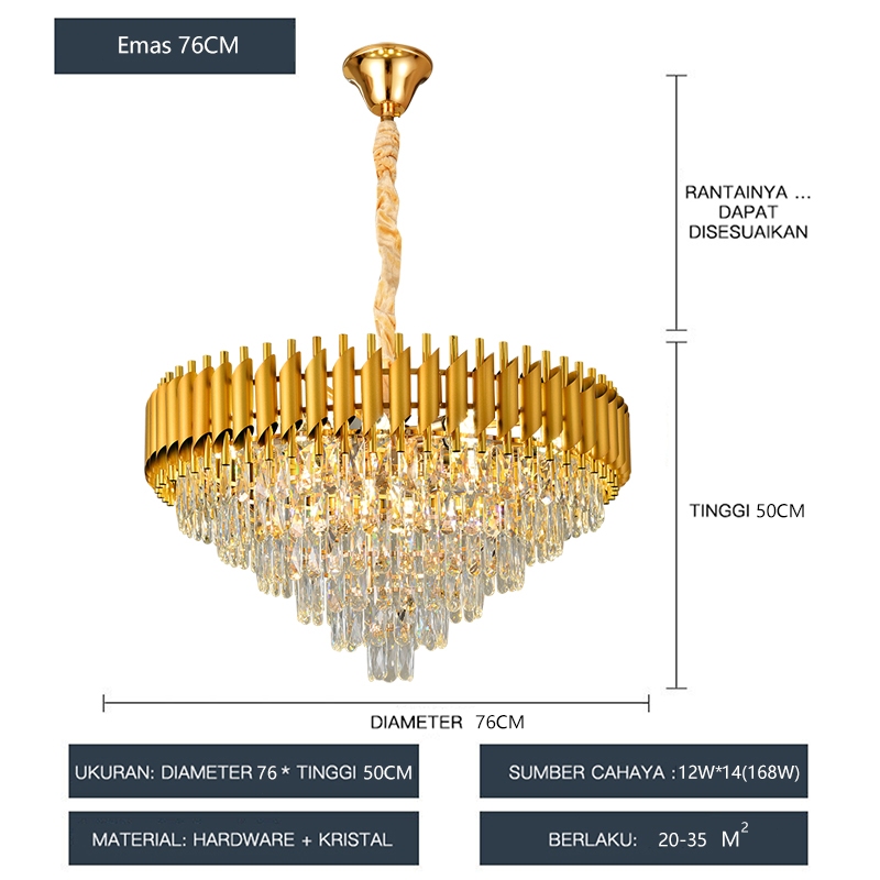 WANSAN Lampu Kristal Nordik Lampu Ruang Tamu Aula Baru Lampu40/50/60/80CM
