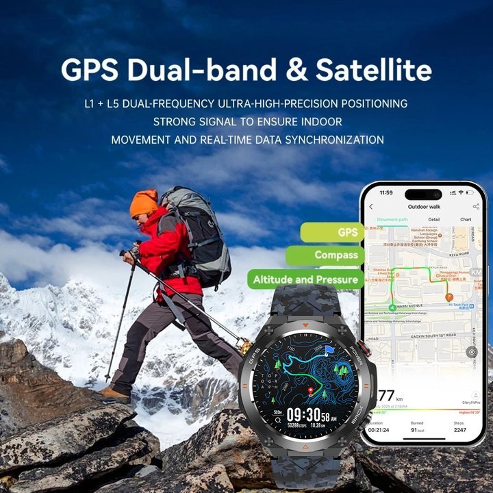 ORI HUAWEI KC82 Smartwatch GPS Map | 1.45 Amoled | 5ATM Waterproof | Compass | Altitude Air Pressure jam olahraga | Neo GPS Smartwatch - IP69K Tahan Air, Pelacakan Real-Time, Layar Anti Gores