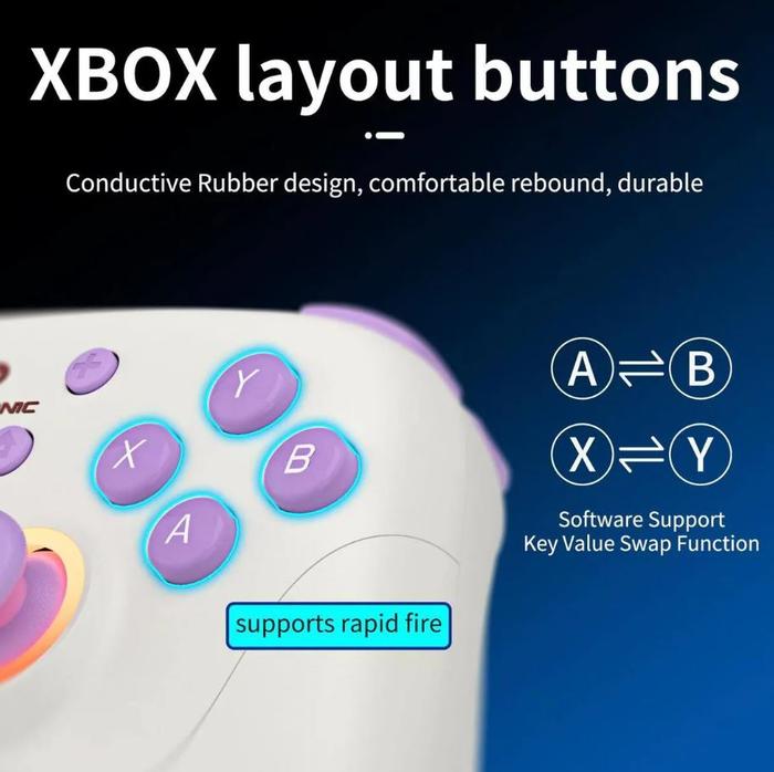ANBERNIC RG P01 GAMEPAD MULTI-PLATFORM CONTROLLER WIRELESS HALL EFFECT STICK TRIGGERS ANDROID IOS PC SWITCH - RADIANT PURPLE