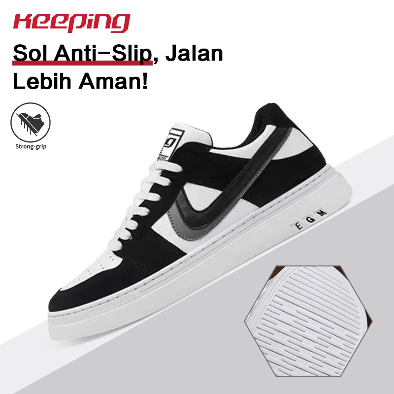 Keeping Sepatu Pria Hitam Sneakers Casual Sepatu Jalan Olahraga Sepatu Sport Cowok Outdoor KSR102
