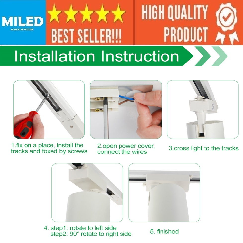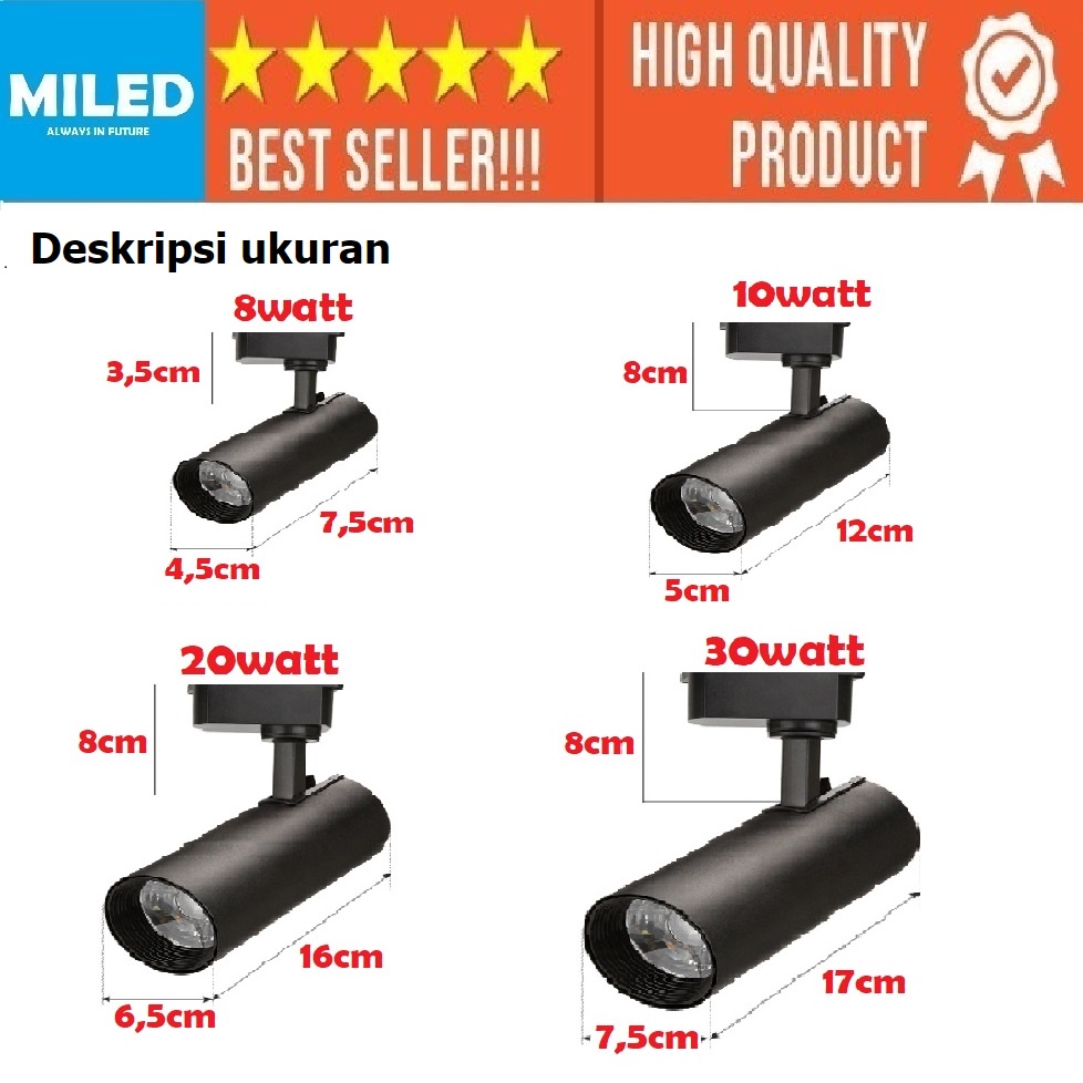 KOMPLIT SET 3 LAMPU + RELL LAMPU REL TRACK LED LAMPU SOROT TRACKLIGHT RELL 7W / 10W / 20WATT / 30 WATT