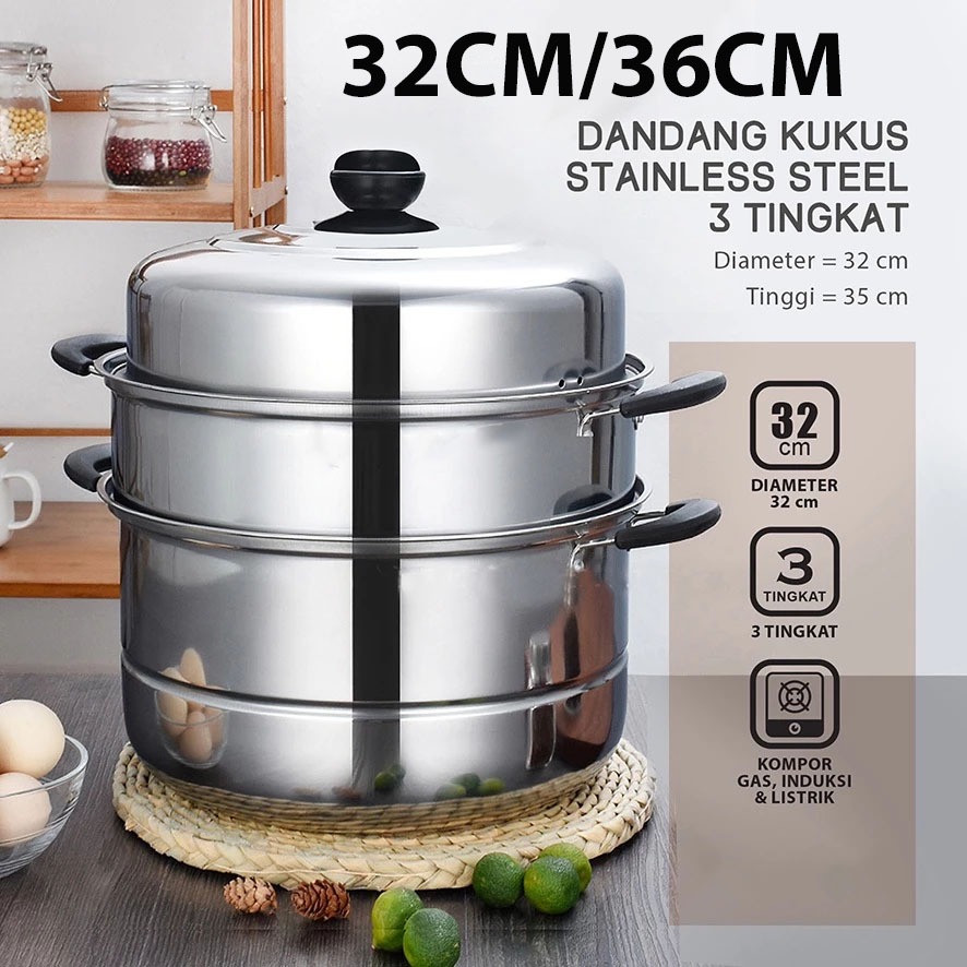 Panci Kukus Dandang Kukus Panci Steamer Panci Kukusan Stainless Steel 32 cm/36 cm