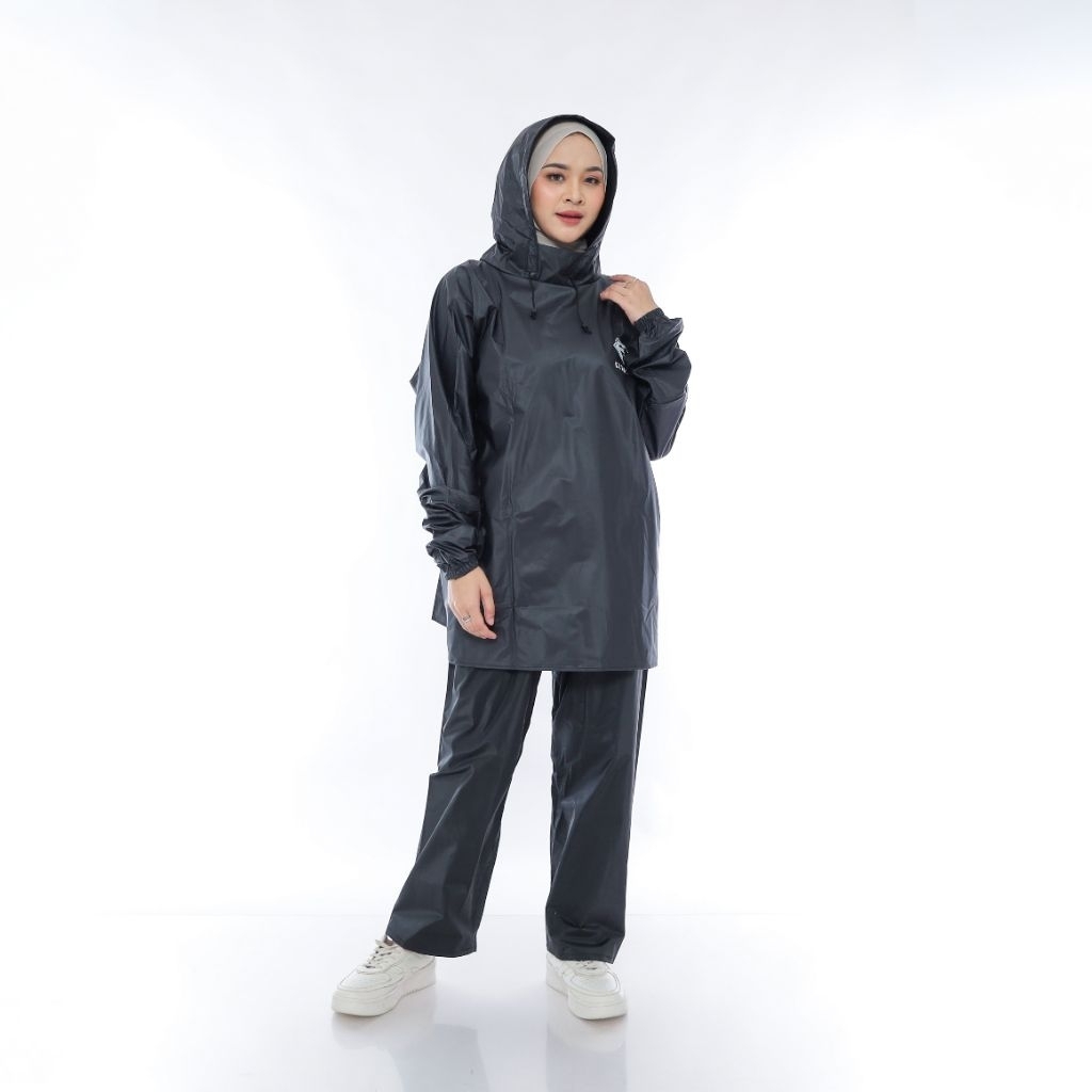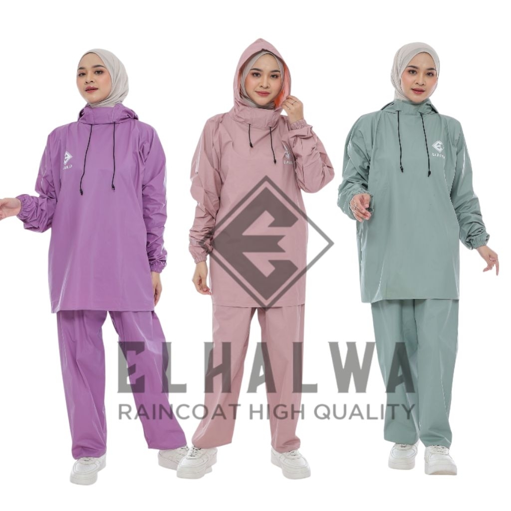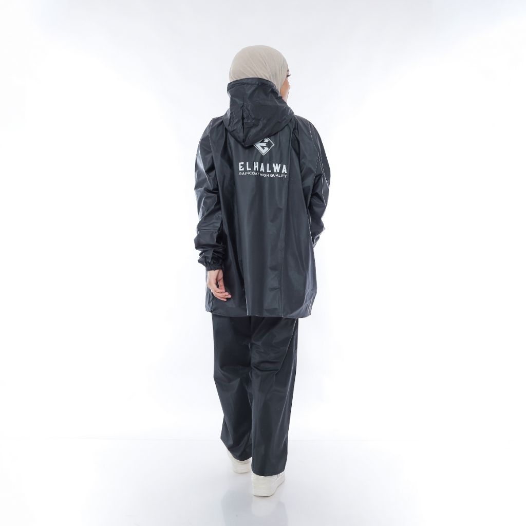 El-Halwa Hoodie Jas Hujan Unisex Pvc Karet Premium Tebal Elastis Kerah Tinggi Tanpa Zipper