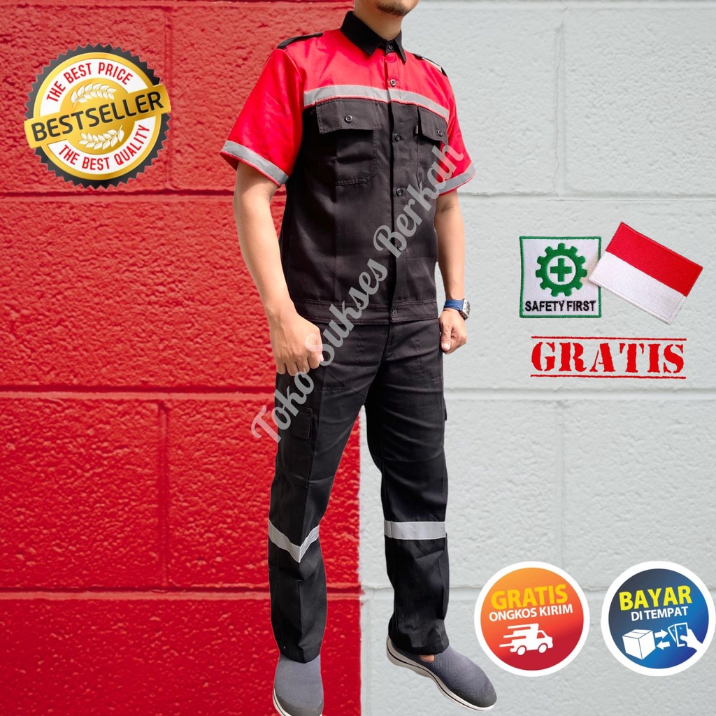 Baju Safety Pendek Kombinasi / Seragam Kerja / Kemeja Proyek Atasan Lengan Pendek / Atasan Kerja Pendek Wearpack Logo
