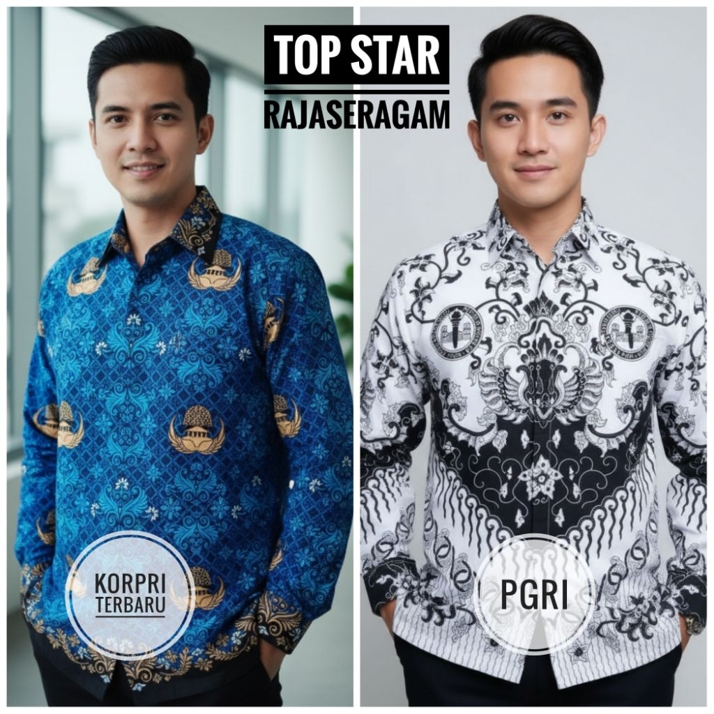 Baju Seragam KORPRI TERBARU PGRI Pria Kemeja Hem Panjang Batik PNS Dinas Guru Kopri
