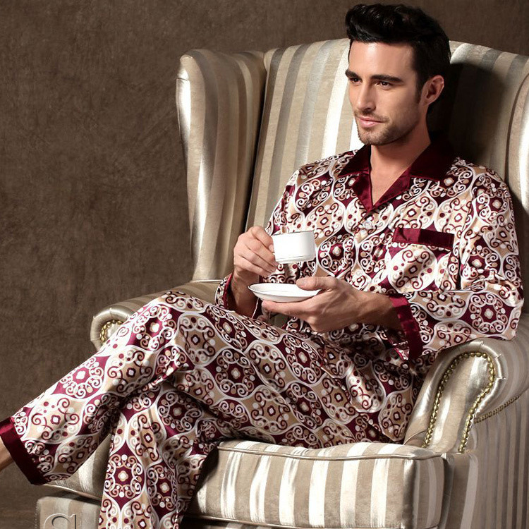 Piyama Sutra Kualitas Tinggi Pria, Set Pakaian Rumah Sutra Es Lengan Panjang