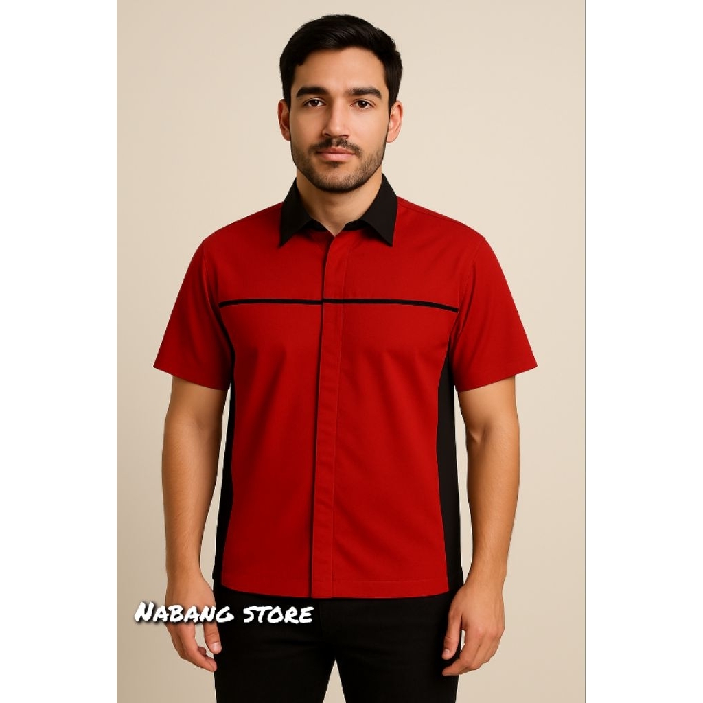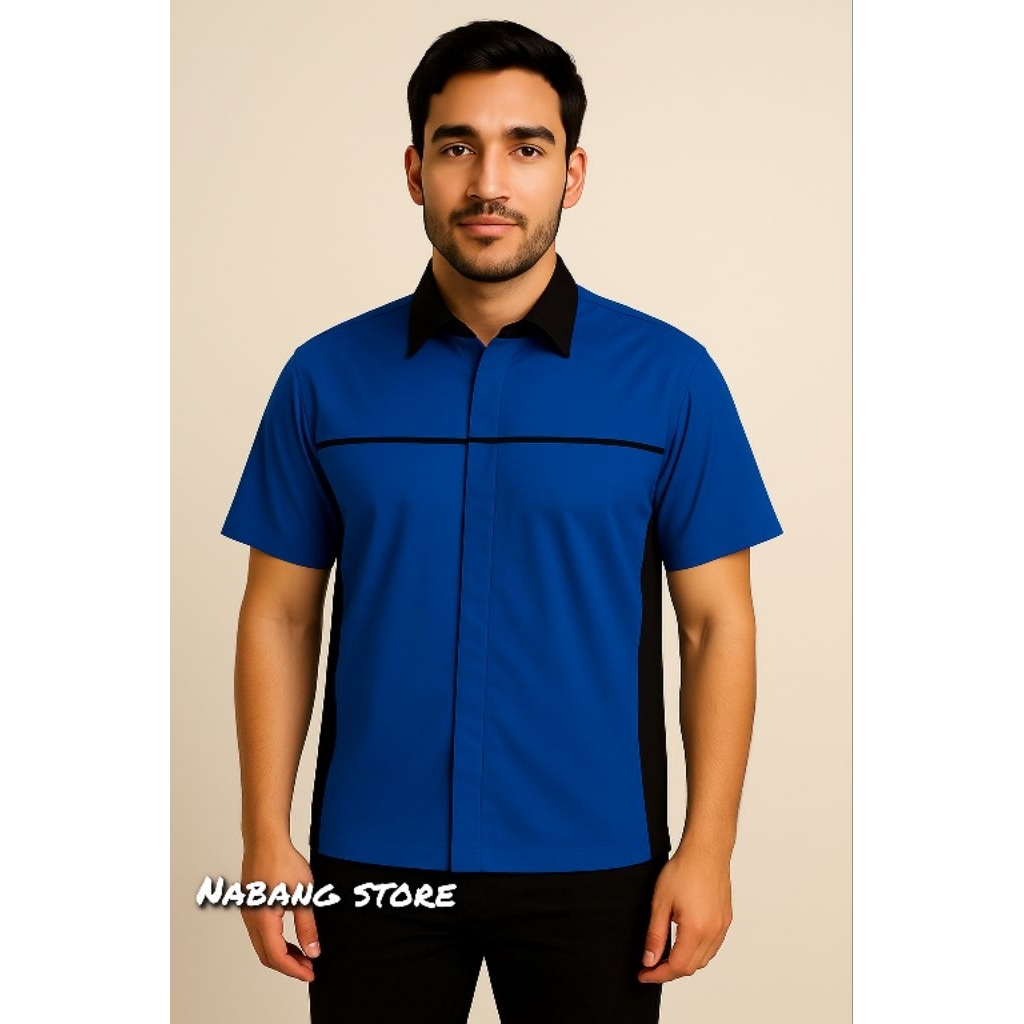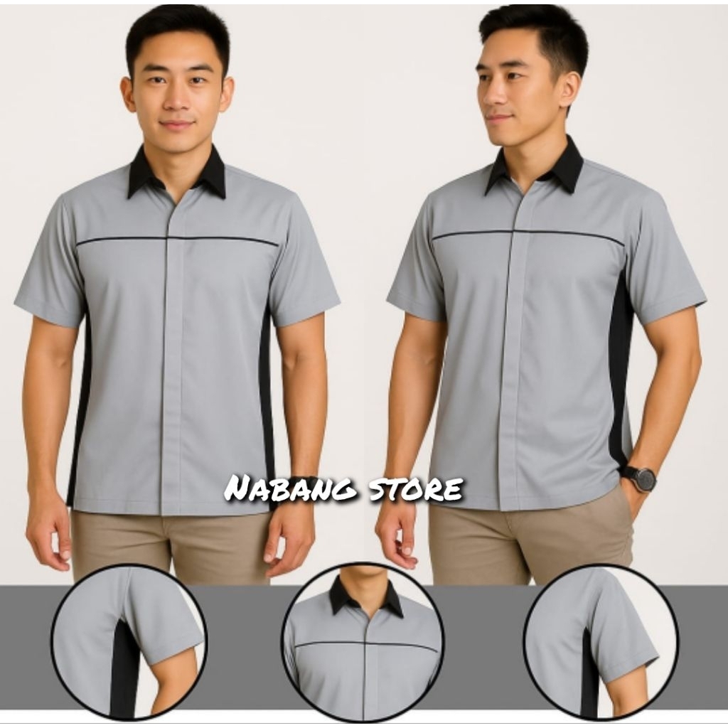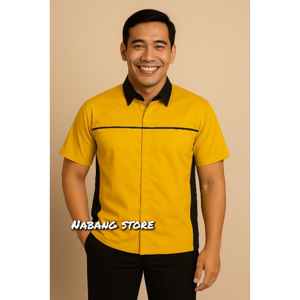 DV Kemeja Seragam Kerja / Kantor Kuning Kmb Hitam Tangan Pendek