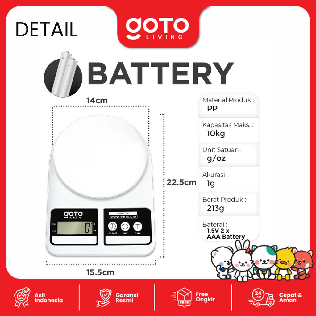 Goto Kyla Kitchen Scale Timbangan Bumbu Dapur Kue Digital Charge LED