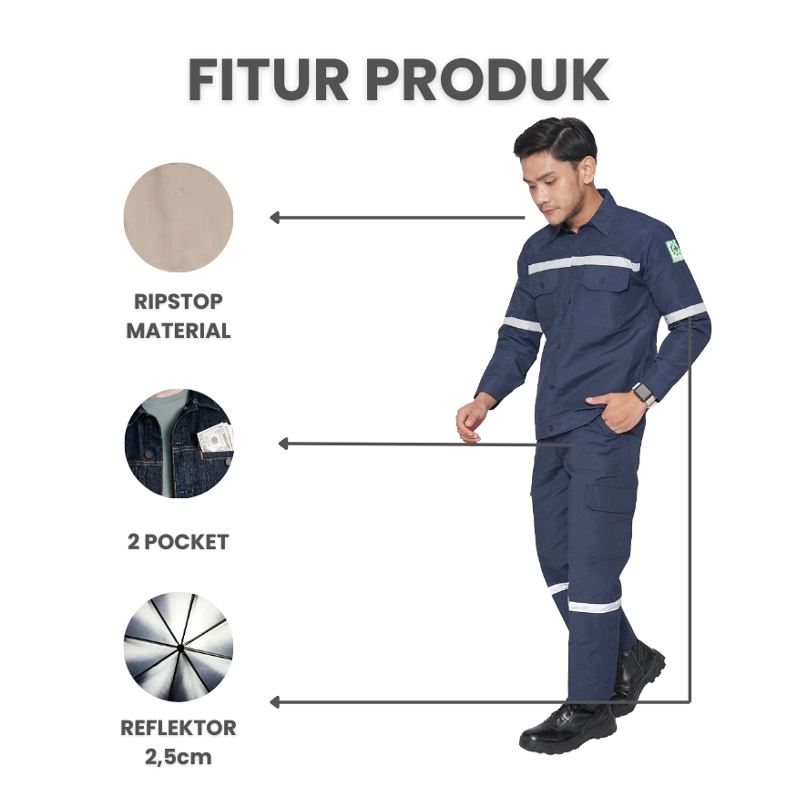 Wearpack Safety Setelan Kemeja & Celana Panjang Lengan Panjang Scotlight – Baju Kerja Lapangan, Proyek, Pabrik, Bengkel