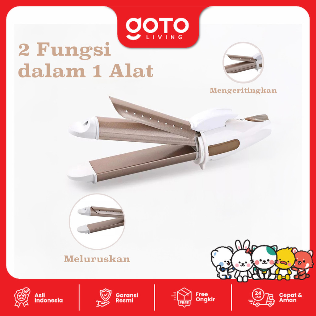 Goto Curly Catokan Rambut Catok Lurus Keriting 2in1 Hair Straightener
