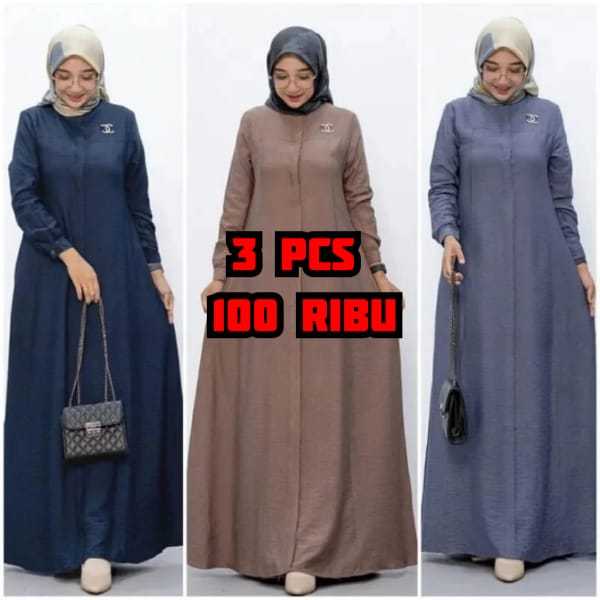 3 PCS 100 RIBU BAJU GAMIS MARYAM CRINKLE POLOS TERBARU KUKINIAN BAHAN ADEM LEMBUT
