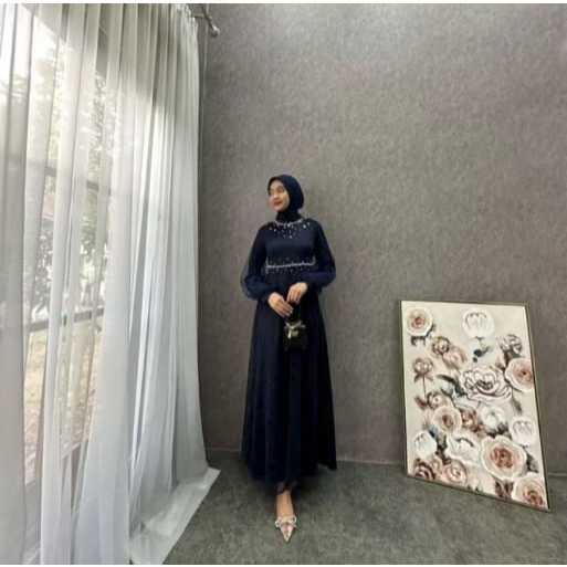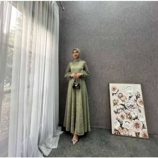 Dress Nadine Exclusive Gamis Lebaran Terbaru Dress Kondangan Gamis Brukat Maxi Pesta Lamaran Tunangan Kekinian Seragam Bridesmaid 2024