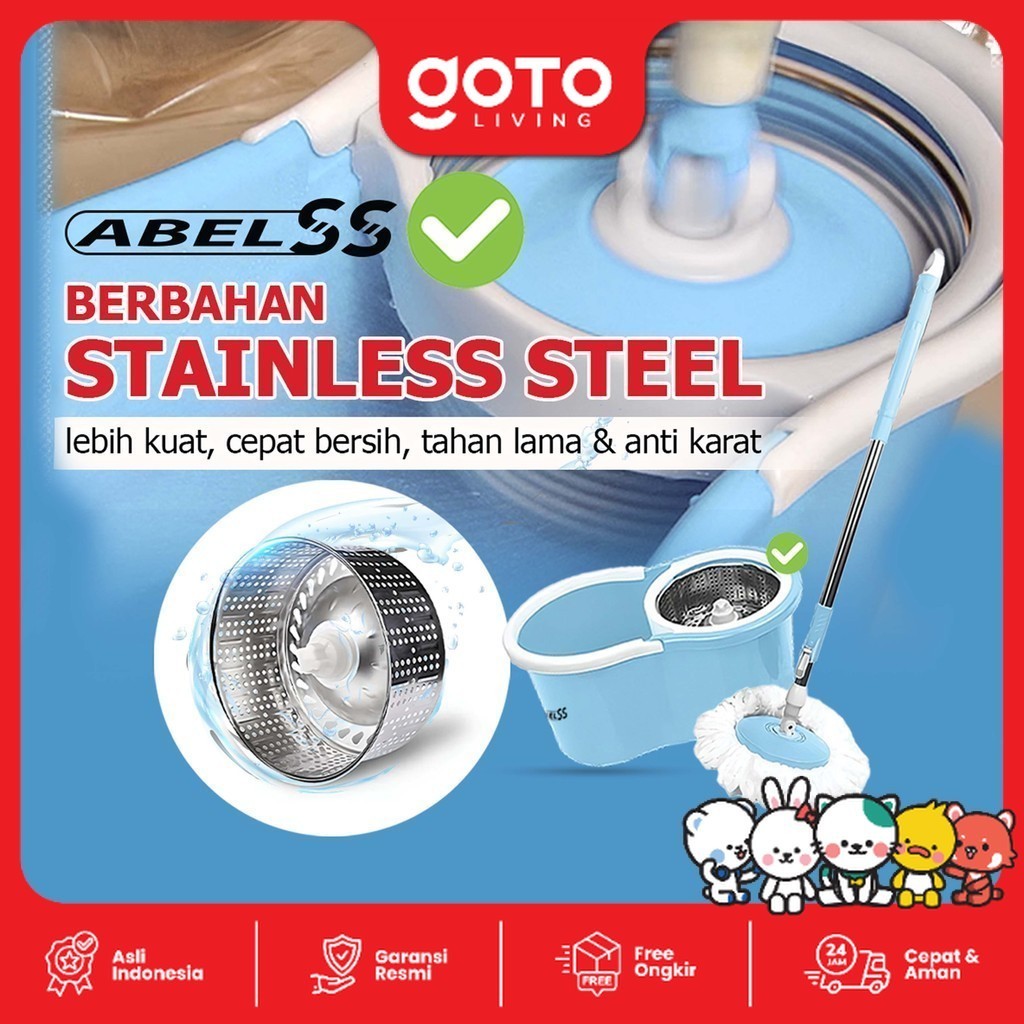 (Promo Special) Goto Abel Spin Mop Pel Lantai Putar Otomatis Set Ember Alat Pel Microfiber Praktis dan Kuat