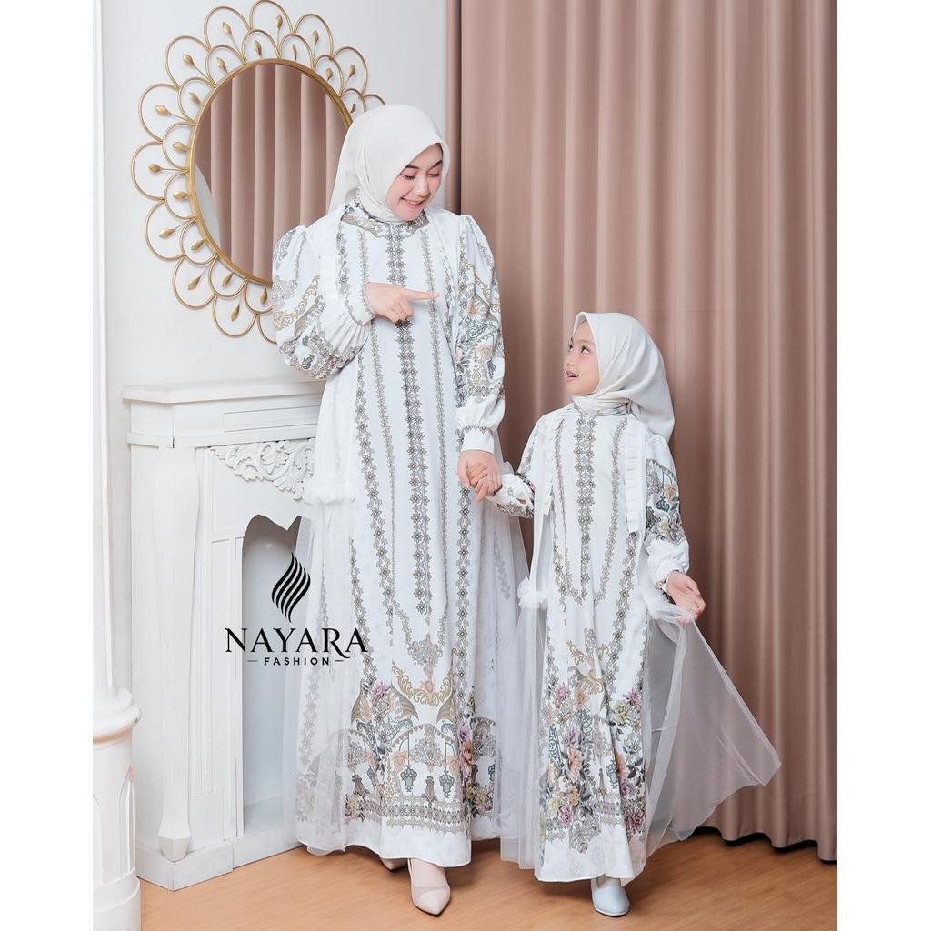 Keyra Dress Series by Nayara fashion - Gamis Couple Ibu Anak Motif Sultan Bahan Sabrina Anti UV Mix Ceruty Polos dan Tille Polos Dress Sarimbit Lebaran Terbaru 2026