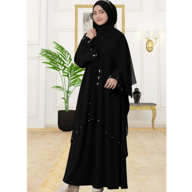 Gamis Abaya Layer Elegant Payet Premium Style Dubai Viral Hitam Lebaran 2026 Modeling Gamis Terbaru